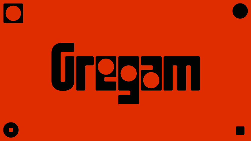 Gregam is a titling typeface that is not afraid of tight settings and time travel. Combining letterforms made of straight mono-linear strokes with big circular counters stands out as being playful & unique. Gregam pays homage to an obscure lettering featured on 1970 T.L. Sherred’s book “Alien Island”.